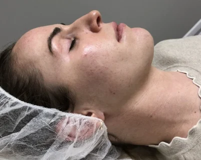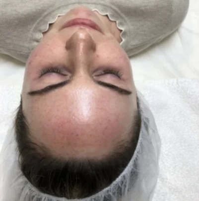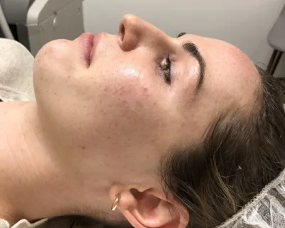 First, Julie massaged a cleanser into my face to remove any residual dirt or skincare from earlier in the day. After I was thoroughly cleansed, she put two cotton pads over my eyes and topped them with goggles to protect me from the powerful light the machine gives off. She then applied a gel that helped to keep my skin cool and allowed the laser to glide over my face with ease. She worked in vertical sections, starting on the right side of my face at my jawbone and up to the top of my cheek bone.